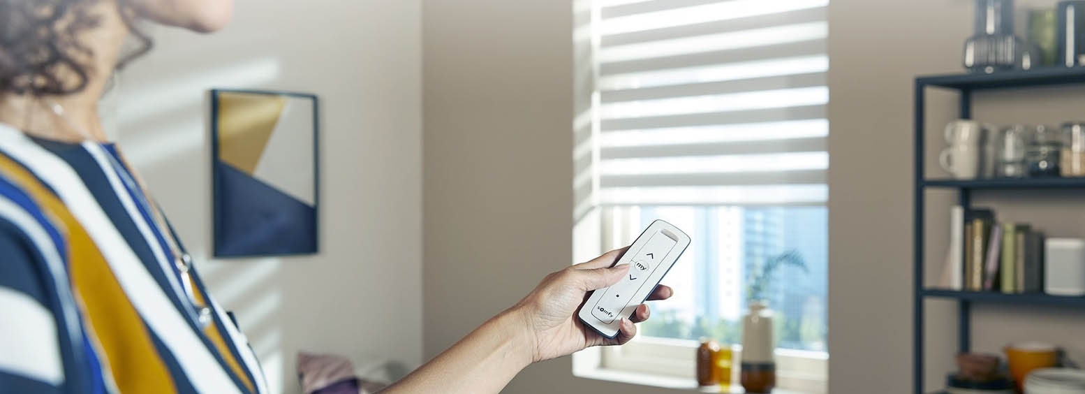 - Διαχειριστείτε την εσωτερική σας σκίαση προγραμματίζοντας από τηλεχειριστήριο ή κινητό πότε θέλετε να ανοιγοκλείνουν οι κουρτίνες, μειώνοντας την καθημερινή φθορά τους.