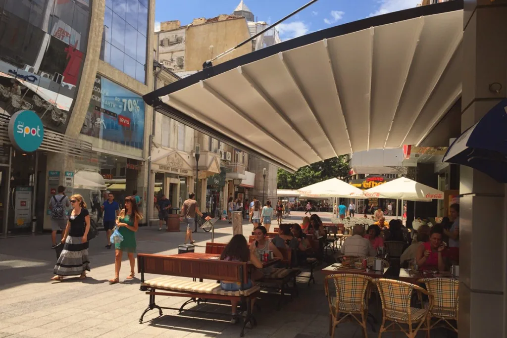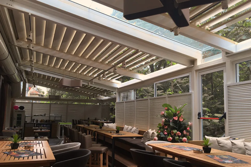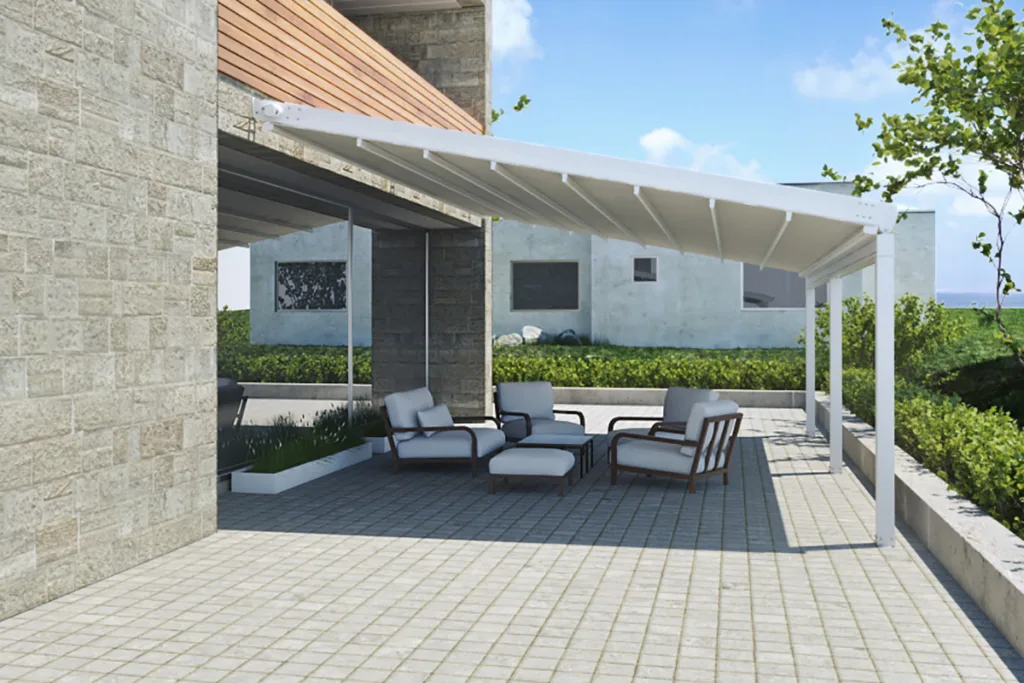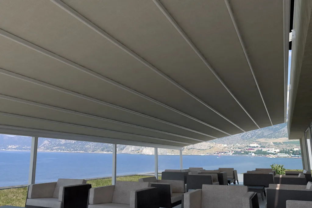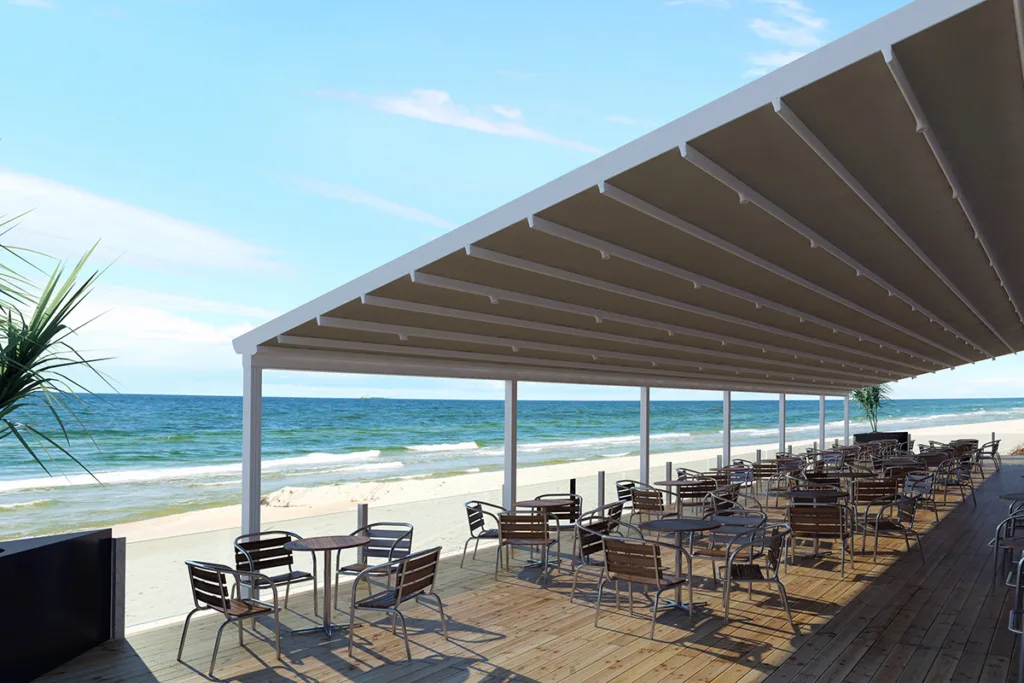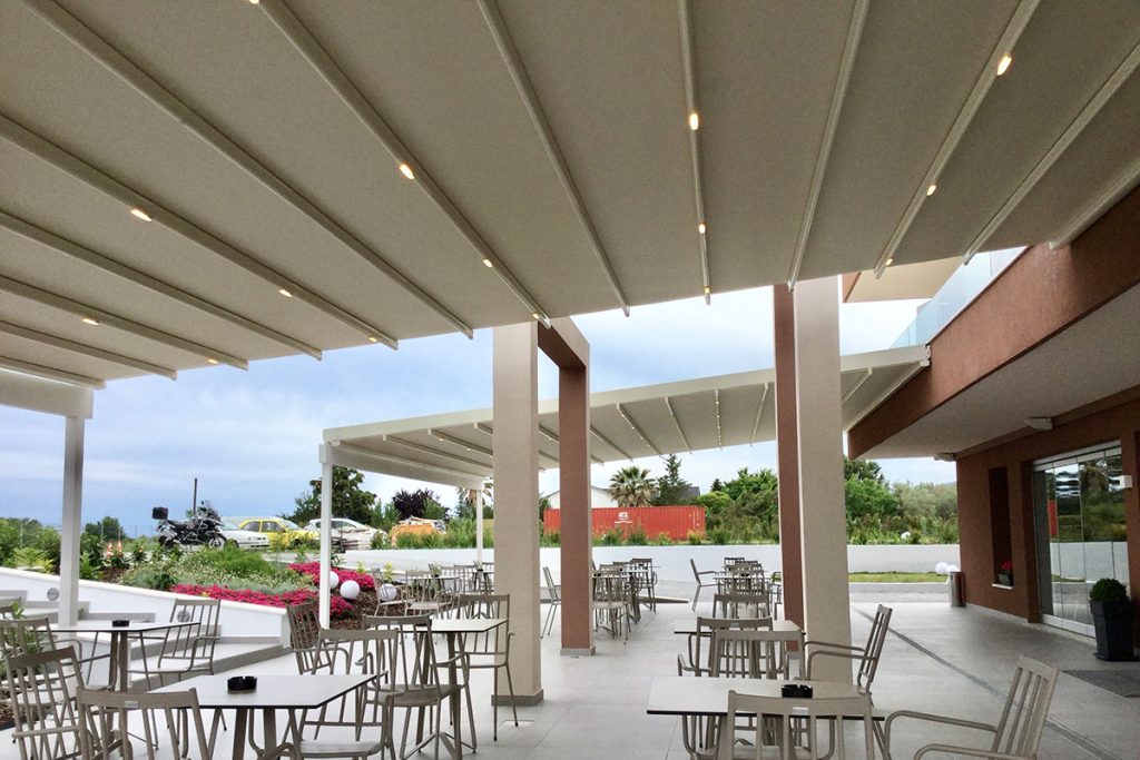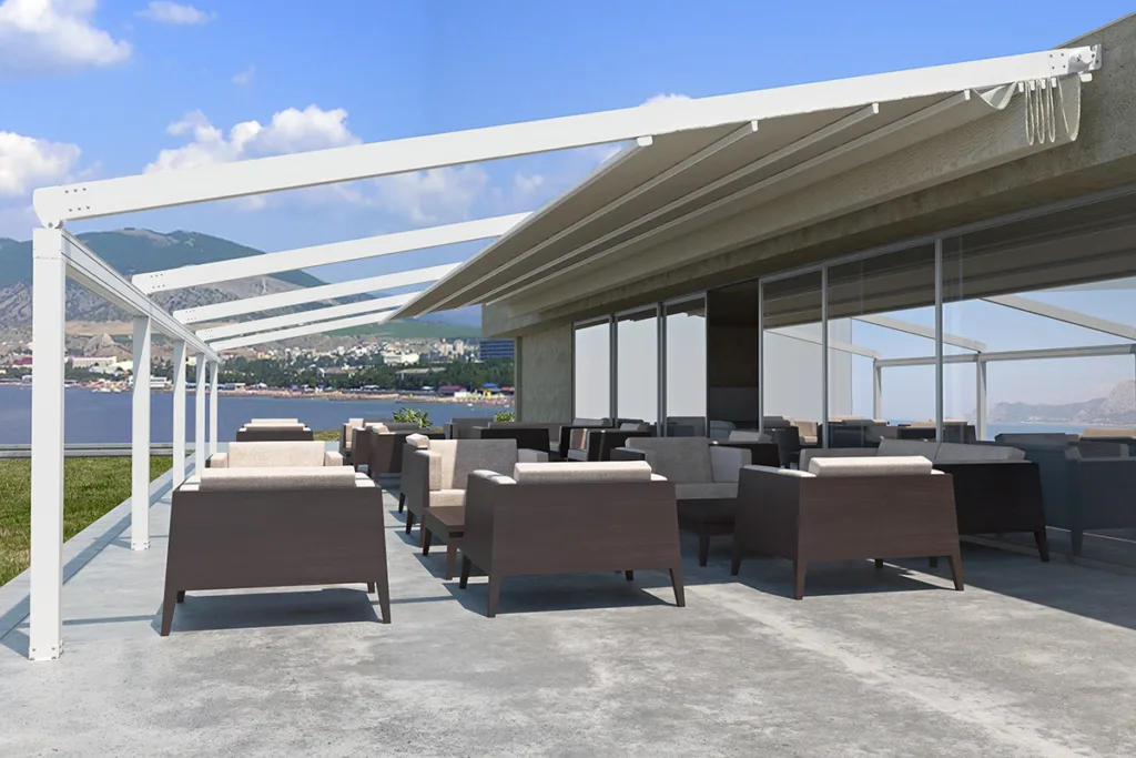Δοκιμασμένη και ιδανική λύση για κάλυψη επαγγελματικών χώρων για κάθε μέγεθος και σχήμα. Διαθέτει πτυσσόμενη οροφή για ρυθμιζόμενη κάλυψη και σκίαση. Είναι ένα σύστημα σκίασης με υψηλής ποιότητα κατασκευής για λειτουργικότητα και ασφάλεια. Επίσης, προστατεύει εγγυημένα και αντέχει σε ήλιο, βροχή και αέρα.