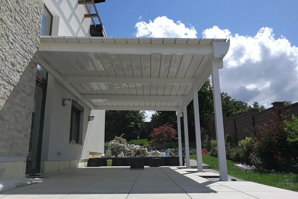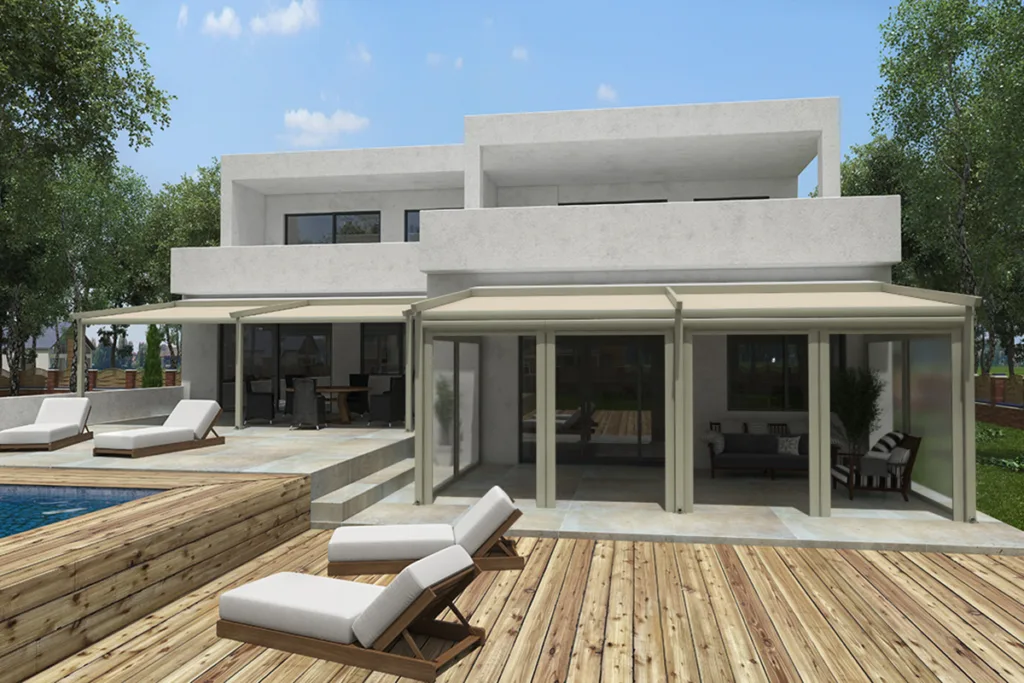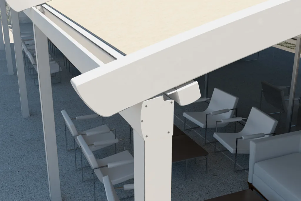 Σύστημα σκίασης με ενισχυμένη κατασκευή και βελτιωμένη αισθητική, με πτυσσόμενη οροφή για ρυθμιζόμενη κάλυψη και σκίαση. Ιδανική λύση για τη κάλυψη εξωτερικών χώρων με εγγυημένη προστασία και αντοχή σε ήλιο, βροχή και αέρα.