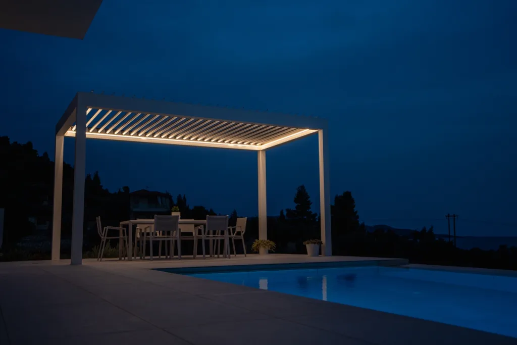 Η νέα πέργκολα Bioclimatic Futura, σας επιτρέπει να απολαμβάνετε τον υπαίθριο χώρο σας όλο το χρόνο παρά τις καιρικές συνθήκες.