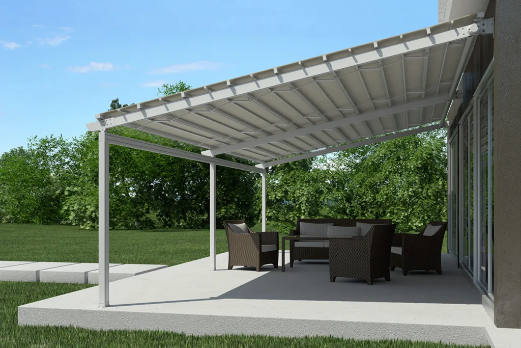 Η πέργκολα Eco αποτελεί την ιδανική λύση για κάλυψη επαγγελματικών χώρων με μεγάλη επιφάνεια και ιδιομορφίες και είναι σχεδιασμένη αποκλειστικά από τη Metaform.