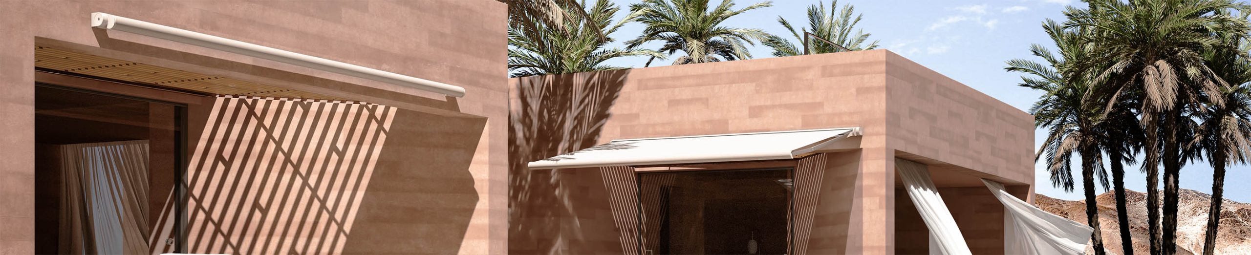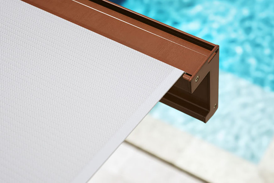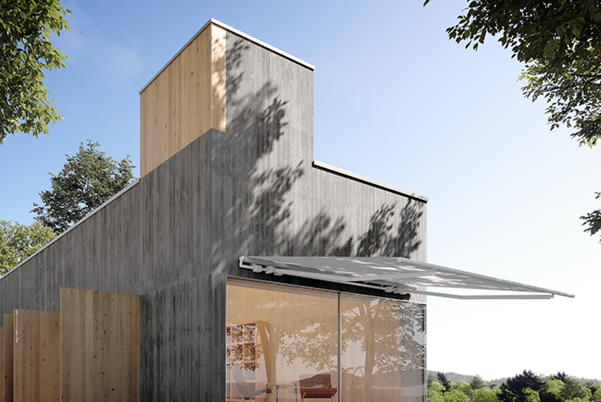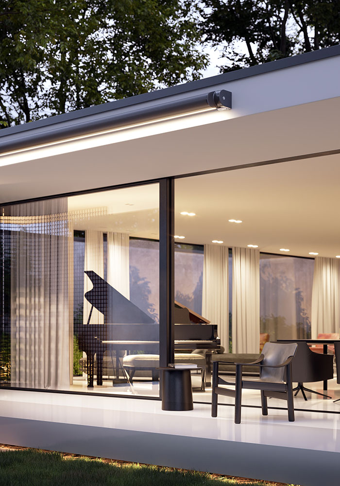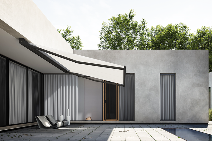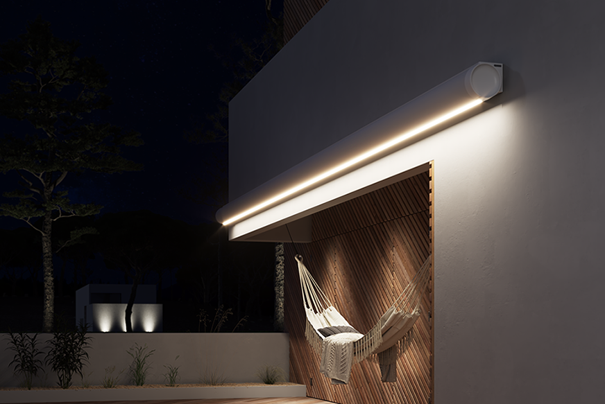 Δεν υπάρχουν ορατές βίδες, ούτε καν αυτές στις βάσεις στήριξης, με τοποθέτηση τοίχου ή οροφής, με πλάτος έως 7,00m και προβολή έως 3,65m και μπορεί να επεκταθεί έως 14,00m πλάτος με ένα ενιαίο ύφασμα και φωτισμό LED στην κασέτα και στους βραχίονες για μια άνευ προηγουμένου φωτεινότητα.